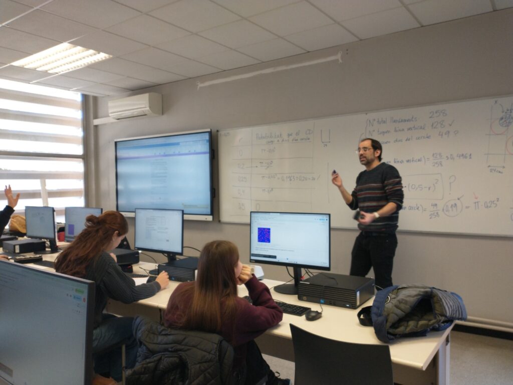 El passat dissabte, els participants del projecte 7deMates van treballar la probabilitat a partir d’un context inspirat en l’agulla de Buffon. Amb l’ajuda dels ordinadors i l’entorn Desmos, van poder interactuar amb applets de Geogebra i van poder fer simulacions per extreure conclusions i acabar trobant diferents probabilitats.
